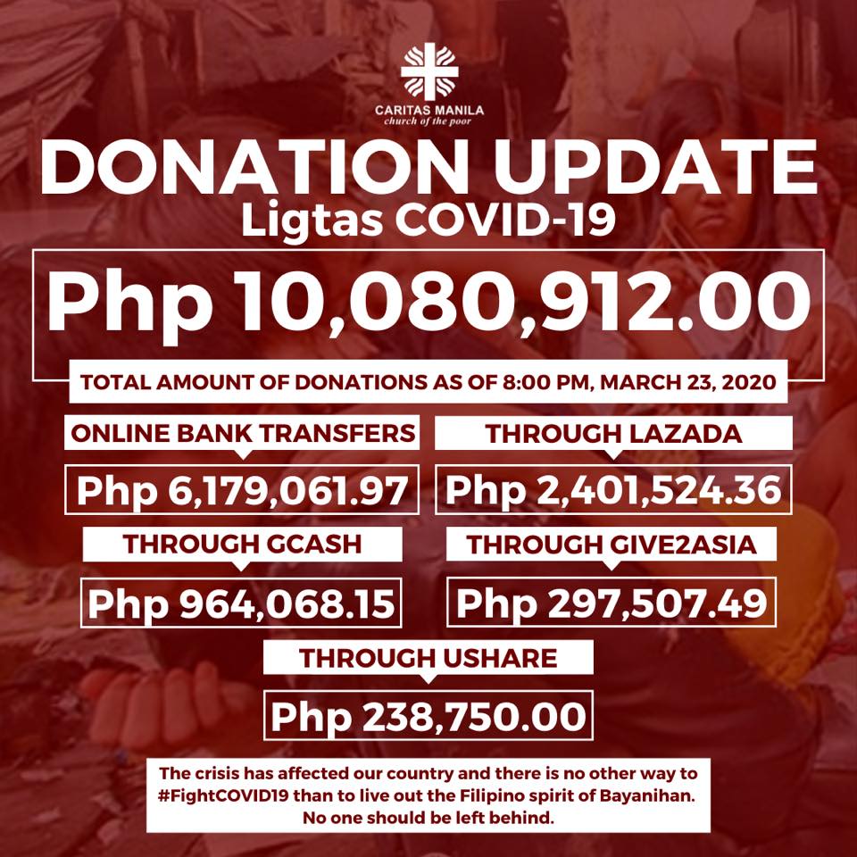 Nanguna ang Caritas Manila sa paglulunsad ng kampanya para sa mga mahihirap na apektado ng lockdown. Ang kampanyang ito na totoong pinagtitiwalaan ng mga tao ay nagdulot ng pamamahagi ng mga basic needs ng mga mahihirap sa gitna ng quarantine period. Kakaiba sa ibang namimigay ng tulong na noodles at sardinas lamang, ang Caritas Manila ay maalagang nagbibigay ng tulong na talagang maaasahan at walang halong pulitika o pagmamayabang sa news man o social media.
