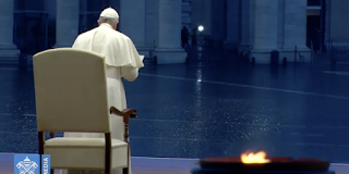 “When evening had come” (Mk 4:35). The Gospel passage we have just heard begins like this. For weeks now it has been evening. Thick darkness has gathered over our squares, our streets and our cities; it has taken over our lives, filling everything with a deafening silence and a distressing void, that stops everything as it passes by; we feel it in the air, we notice in people’s gestures, their glances give them away. We find ourselves afraid and lost. Like the disciples in the Gospel we were caught off guard by an unexpected, turbulent storm. We have realized that we are on the same boat, all of us fragile and disoriented, but at the same time important and needed, all of us called to row together, each of us in need of comforting the other. On this boat… are all of us. Just like those disciples, who spoke anxiously with one voice, saying “We are perishing” (v. 38), so we too have realized that we cannot go on thinking of ourselves, but only together can we do this.